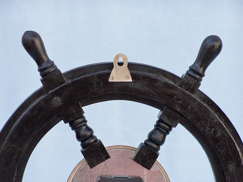 The Deluxe Class Wood and Chrome Pirate Ship Wheel Clock 18" is one of our most popular decorative clocks. Made from rare, high quality Shisham wood, this piece is sure to turn your space into a daring adventure. In addition, the chrome center of the wheel includes a real, working clock. The clock is approximately 5-inches in diameter and rests perfectly inside the ship wheel. This strong solid wood wheel also features a hinge on the back for easy placement and mounting.