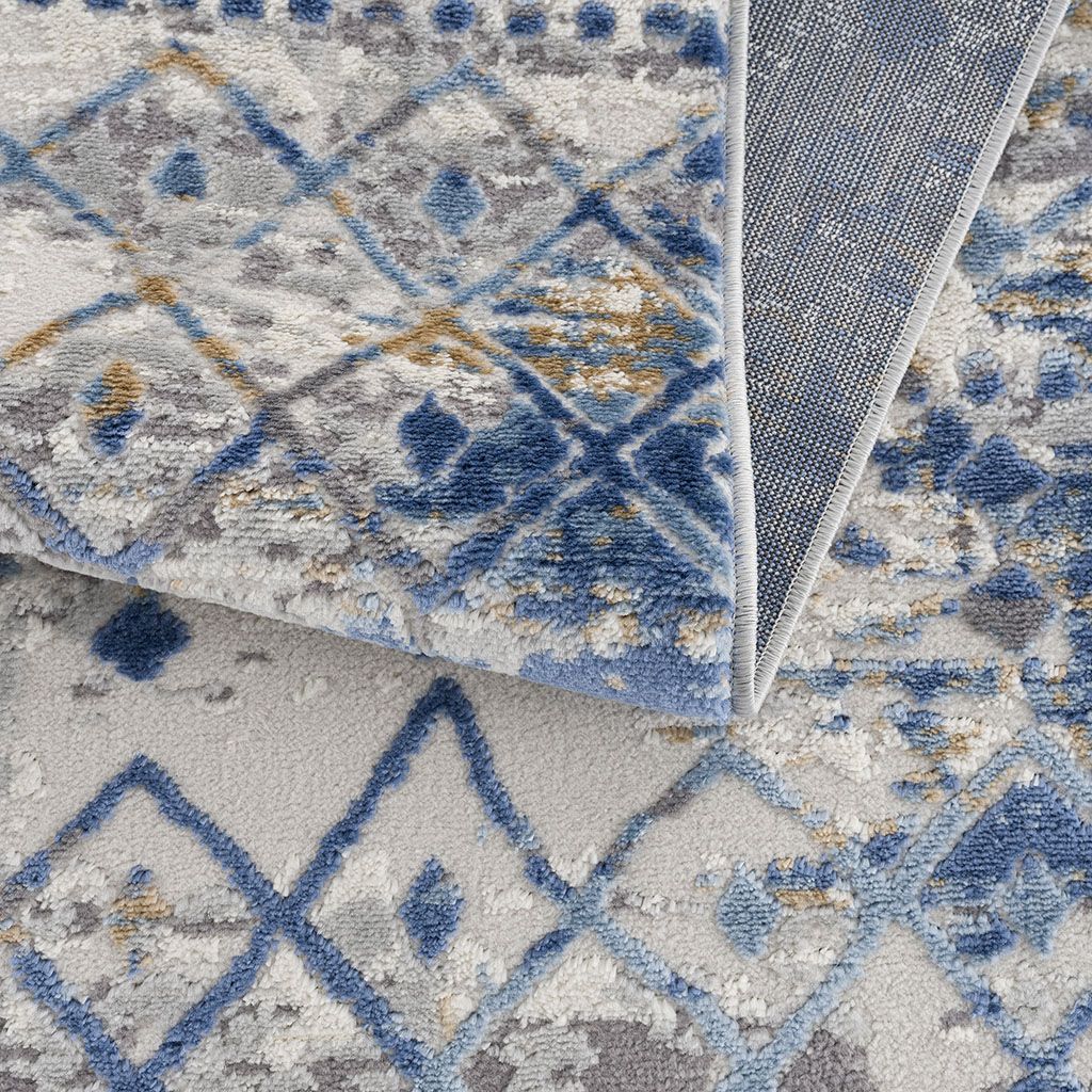 Add a fashionable style to your living space with the Madison Park Hannah Moroccan Area Rug. This machine woven, cut area rug features a blue and cream globally inspired print creating a rich and beautiful, look and feel. The medium soft pile provides simple comfort, as a transparent sprayed latex reverse helps to prevent rug from sliding making it well suited to high-traffic areas in your home. Easy to clean with a vacuum or spot cleaning, while also stain and fade resistant - this area rug brings a splash of color and a textural element to any home decor. This woven area rug is OEKO-TEX certified, meaning it does not contain any harmful substances or chemicals to ensure quality comfort and wellness. Available in multiple colors and sizes, this rug is perfect for any living room, family room, and or other room decor. A rug pad is highly recommended to keep the rug more secured in place; Rug pad sold separately.