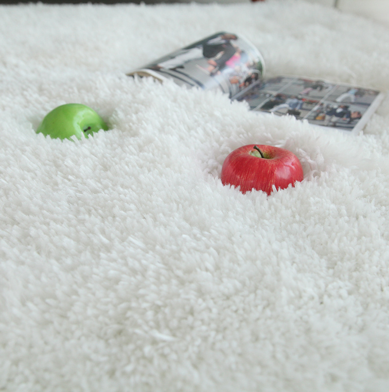 Long Pile Snow White Shag Area Rug. Hand Tufted and extra soft. 100% Polyester with cotton backing. Scratch resistant on hardwood floors. Vacuum regularly. For minor spills, spot clean with a mild detergent using a wet cloth or paper towel. One Year Limited Manufacturer Warranty.