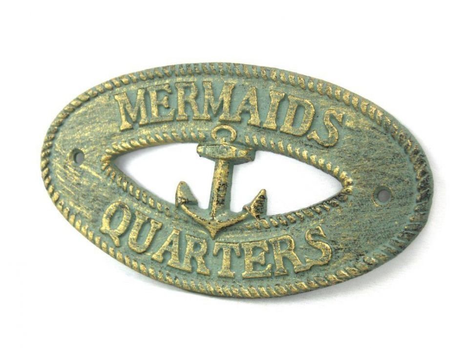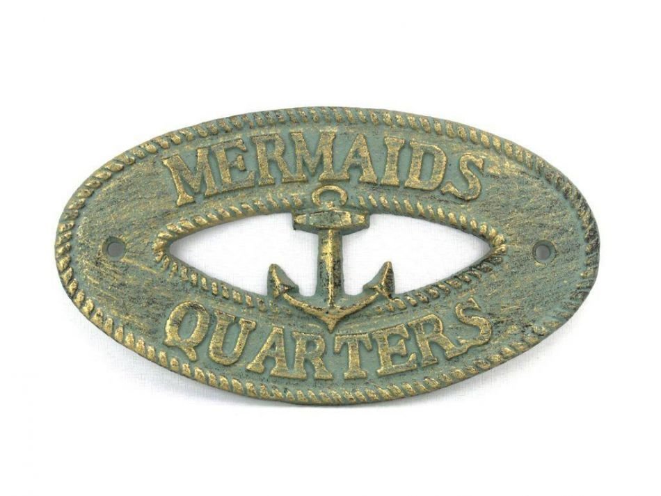 Antique Bronze Cast Iron Mermaids Quarters with Anchor Sign 8""