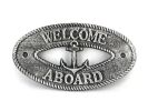 Antique Silver Cast Iron Welcome Aboard with Anchor Sign 8""