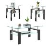 Set of 2, Modern Tempered Glass Tea Table Coffee Table End Table, Square Table for Living Room, Transparent/Black